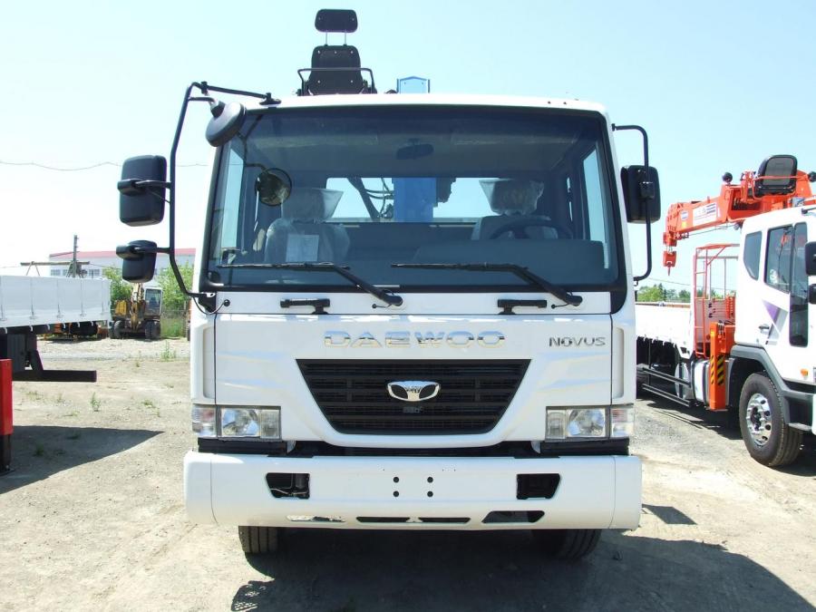 Новый DAEWOO NOVUS 2012 г.в., грузоподъемность борта - 11.5 т, длина борта - 9.5 м, грузоподъёмность стрелы - 7100 кг, максимальная высота вылета - 23 м, новая двухцилиндровая крановая установка DONGYANG SS1926. Двигатель: дизель DE12TIS, ПРОСТОЙ ТНВД, EURO-4, 340 л.с, 12000 см3. Шестиступенчатая коробка передач. 4WD. Подогрев топлива при запуске. Система самодиагностики. Кондиционер, подогрев спальника. Горный тормоз. В комплект входит люлька.
