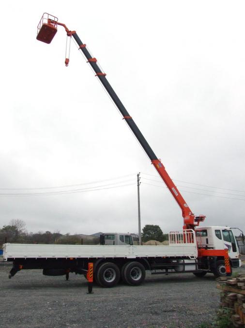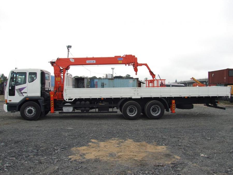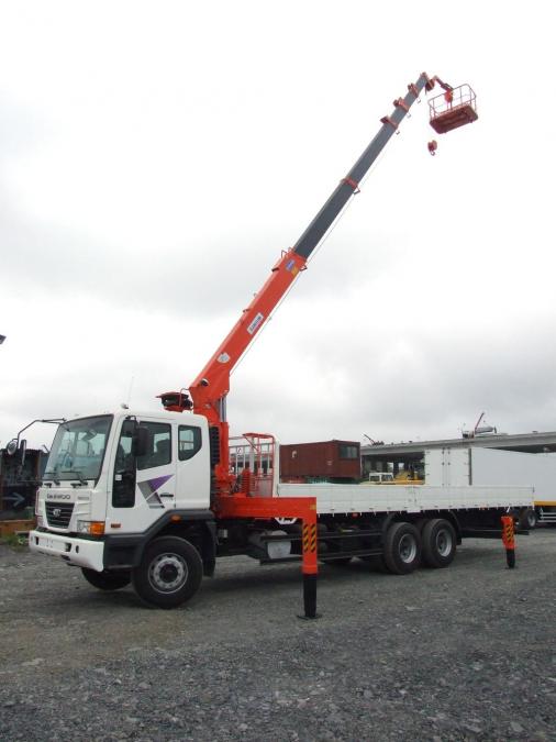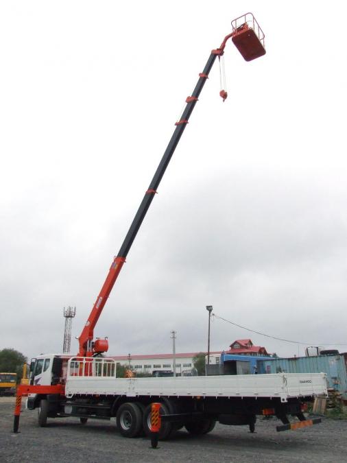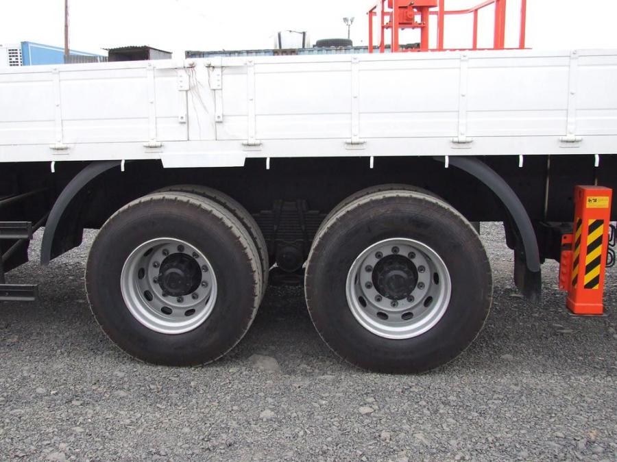 Новый бортовой грузовик с крановой установкой, 3 оси, грузоподъемность: борт - 15.5 т; стрела - 7.1 т. Длина борта - 9.5 м, ширина - 2.30 м. Новая двухцилиндровая стрела марки KANGLIM KS2056, максимальная высота вылета - 23.3 м. Двигатель: дизель DOOSAN DV11, EURO-4, 420 л.с, 11000 см3. Шестиступенчатая коробка передач. Турботаймер. Количество мест - 2 + спальник. Кондиционер, круиз-контроль, подогрев зеркал и топливного фильтра, CD, MP3. В комплект входит люлька. VIN - 0685.