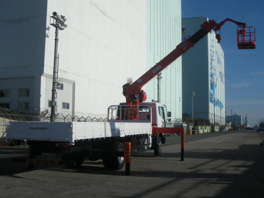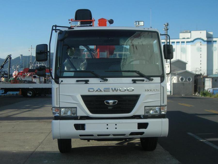 Новый DAEWOO NOVUS 2011 г.в., грузоподъемность борта - 8.5 т, длина борта - 8.2 м, грузоподъёмность стрелы - 7100 кг, максимальная высота вылета - 23.3 м, новая двухцилиндровая крановая установка Kanglim KS2056. Дизельный шестицилиндровый рядный двигатель DOOSAN DL08, мощность двигателя - 250 л.с. EURO4. Люлька в комплекте. VIN - 0101