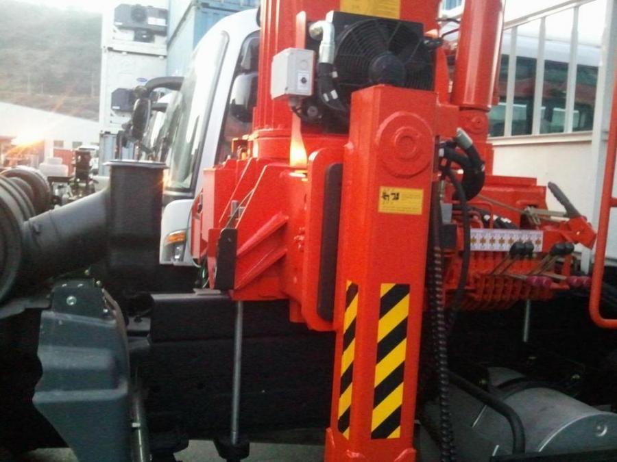 Новый бортовой грузовик с крановой установкой, 3 оси, 4WD, грузоподъемность: борт - 15.5 т; стрела - 10.1 т. Длина борта - 9.5 м, ширина - 2.30 м. Новая модель стрелы - KANGLIM KS3000 - 10-ти тонная двухцилиндровая МИНУСОВАЯ (с отрицательным горизонтальным углом наклона) и «высокими» передними аутригерами. Стрела оборудована «УСТРОЙСТВОМ БЕЗОПАСНОСТИ» и ЭКРАНОМ ПЛАНИРОВАНИЯ погрузки на верхнем пульте управления, максимальная высота подъема – 25.0 м(с гуськом - 29.0 м). Двигатель: дизель DOOSAN DV11, EURO-4, 420 л.с, 11000 см3. Шестиступенчатая коробка передач. Количество мест - 2 + спальник. Кондиционер, круиз-контроль, подогрев зеркал и топливного фильтра, CD, MP3. В комплект входит люлька. VIN - 0696.