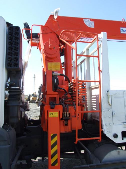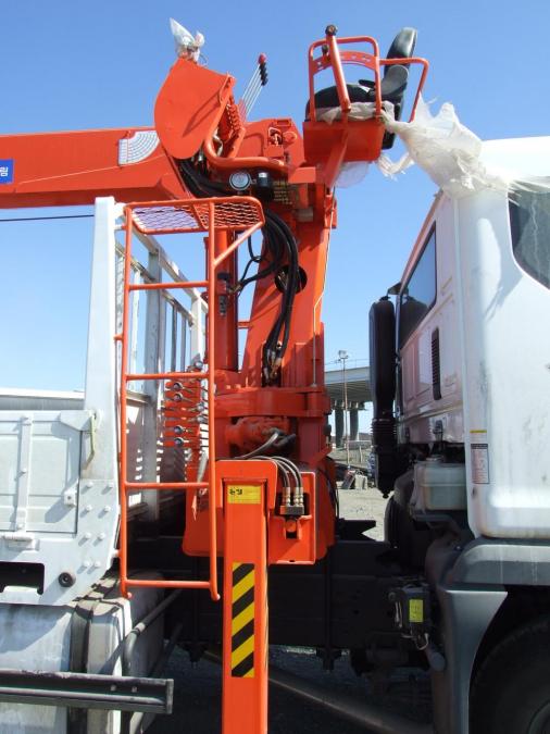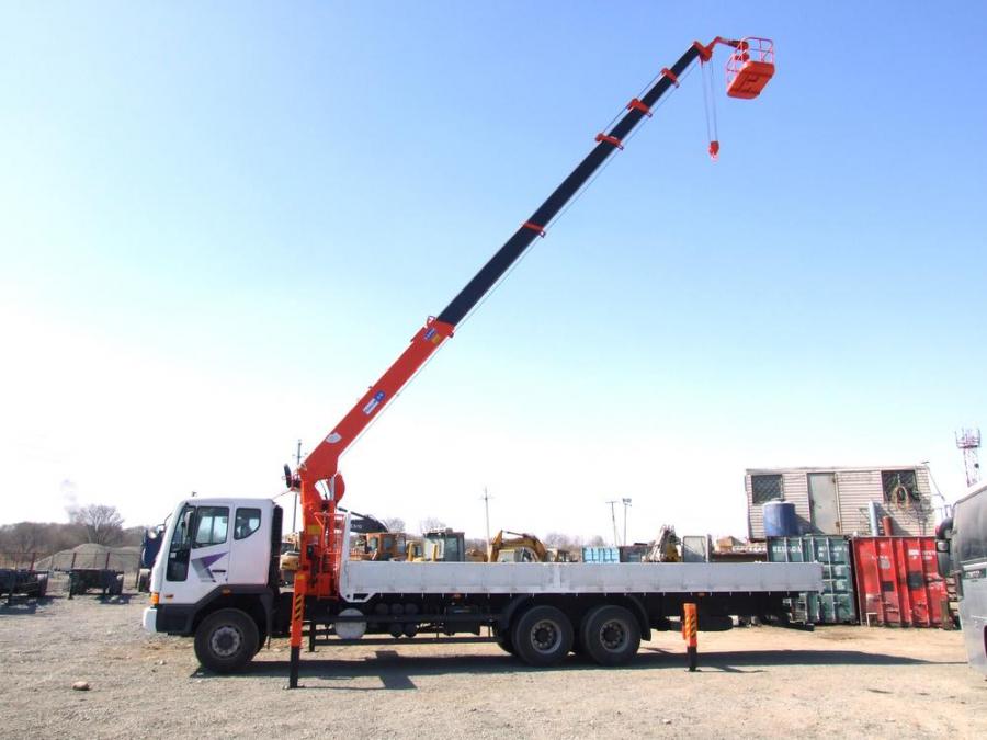 Новый бортовой грузовик с крановой установкой, 3 оси, грузоподъемность: борт - 15.5 т; стрела - 7.1 т. Длина борта - 9.5 м, ширина - 2.30 м. Новая двухцилиндровая стрела марки KANGLIM KS2056, максимальная высота вылета - 23.3 м. Двигатель: дизель DOOSAN DV11, EURO-4, 420 л.с, 11000 см3. Шестиступенчатая коробка передач. Количество мест - 2 + спальник. Кондиционер, круиз-контроль, подогрев зеркал и топливного фильтра, CD, MP3. В комплект входит люлька. VIN -