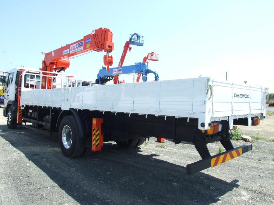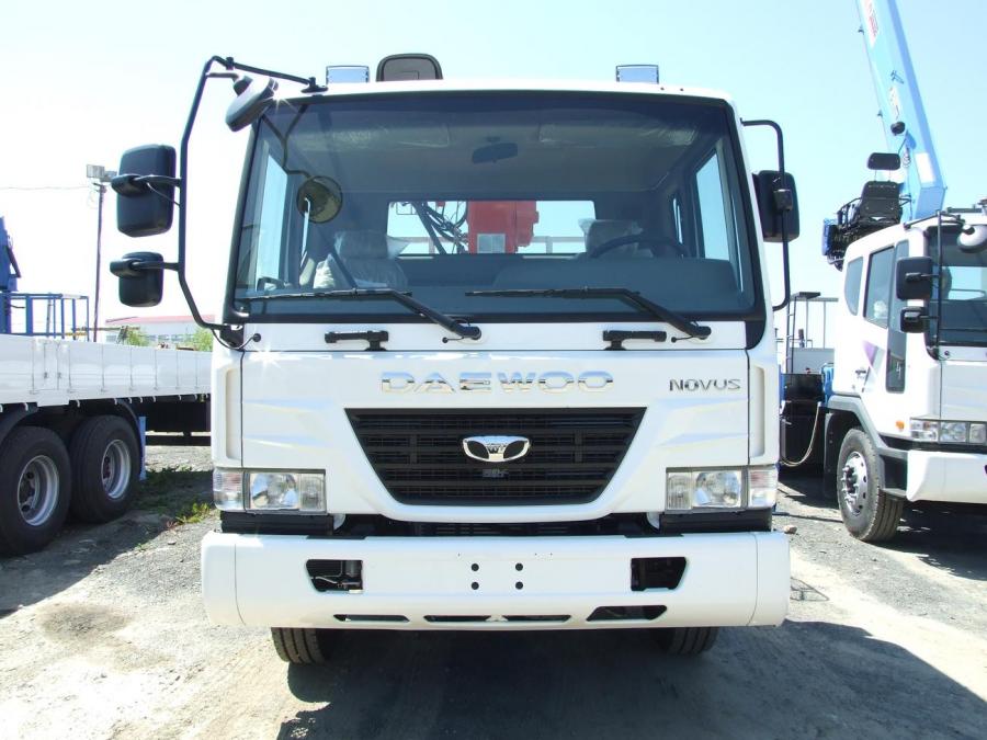Новый DAEWOO NOVUS 2012 г.в., грузоподъемность борта - 8.5 т, длина борта - 8.2 м, грузоподъёмность стрелы - 7100 кг, максимальная высота вылета - 23.3 м, новая двухцилиндровая крановая установка KANGLIM KS2056. Дизельный шестицилиндровый рядный двигатель DOOSAN DL08, мощность двигателя - 250 л.с. EURO4. Люлька в комплекте. VIN -
