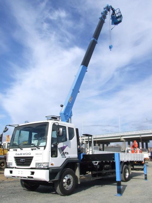 Новый DAEWOO NOVUS 2012 г.в., грузоподъемность борта - 8.5 т, длина борта - 8.2 м, грузоподъёмность стрелы - 7100 кг, максимальная высота вылета - 23 м, новая двухцилиндровая крановая установка DONGYANG SS1926. Дизельный шестицилиндровый рядный двигатель DOOSAN DL08, мощность двигателя - 250 л.с. EURO4. Люлька в комплекте.