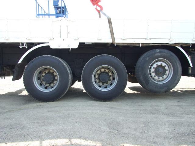 Бортовой грузовик с крановой установкой, 5 осей, грузоподъемность: борт – 25 тонн; стрела -10 тонн(НОВАЯ). Стрела марки KANGLIM 2605. Максимальная высота вылета - 28 м. Модель двигателя: DV 11, 420 л.с. Турботаймер. Восьмиступенчатая коробка передач с двумя делителями. Блокировка межосевого дифференциала. Длина борта - 10.10 м, ширина - 2.30 м. Количество мест - 2 + спальник. Две лебёдки. Шесть аутригеров. В комплект входит люлька. Новая резина, полная предпродажная подготовка, замена всех жидкостей, масел, фильтров.