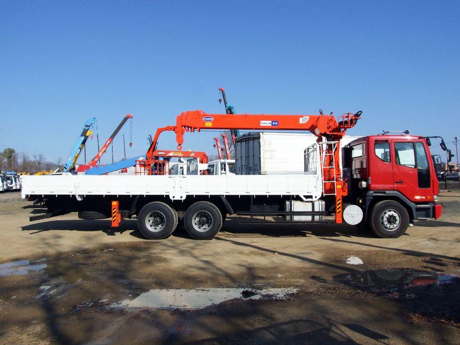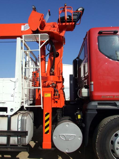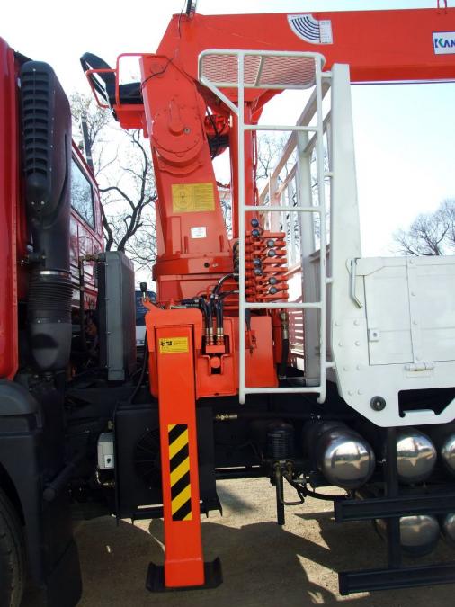 Бортовой грузовик с крановой установкой, 3 оси, грузоподъемность: борт - 15.5 т; стрела - 7.1 т. Длина борта - 8.6 м, ширина - 2.30 м. Новая двухцилиндровая стрела марки KANGLIM 2056, максимальная высота вылета - 23.3 м. Двигатель: DV11, 420 л.с, 12000 см3. Турботаймер. Количество мест - 2 + спальник. В комплект входит люлька. VIN - 0013