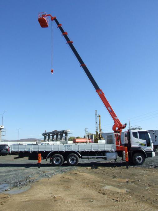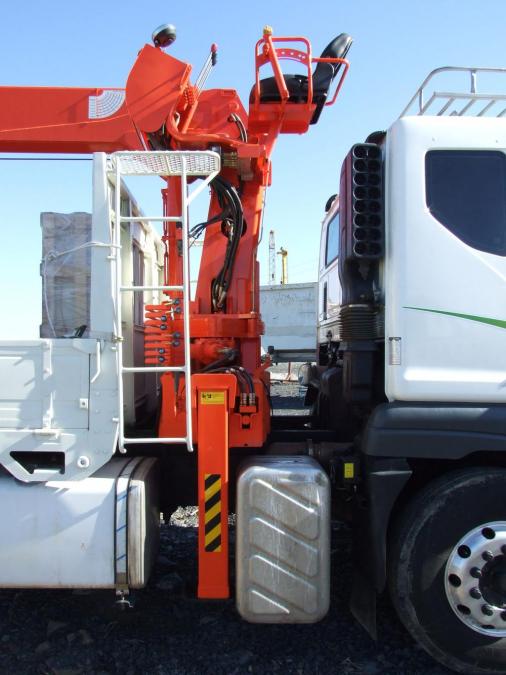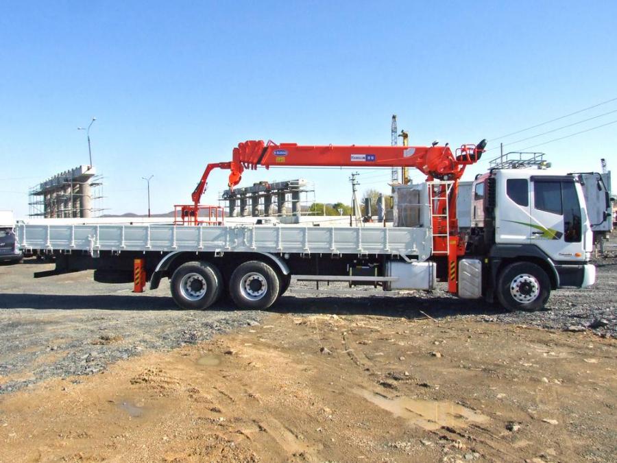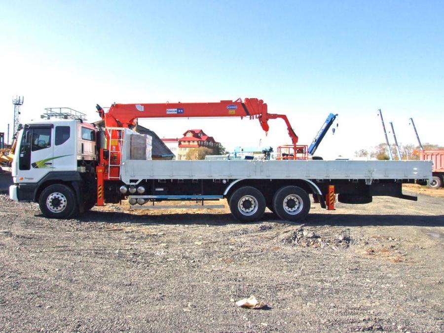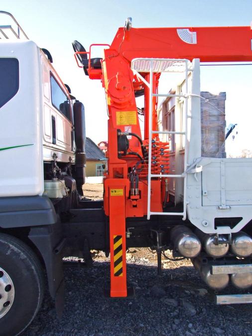 Бортовой грузовик с крановой установкой, 3 оси, грузоподъемность: борт - 15.5 т; стрела - 7 т. Длина борта - 9.5 м, ширина - 2.30 м. Новая двухцилиндровая стрела марки KANGLIM KS2056, максимальная высота вылета - 23.3 м. Двигатель: дизель CUMMINS, EURO-4, 390 л.с, 11000 см3. Шестнадцатиступенчатая механическая коробка передач(ZF16). Турботаймер. Количество мест - 2 + спальник. В комплект входит люлька.