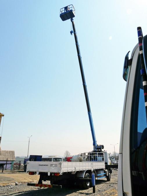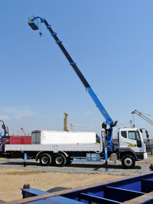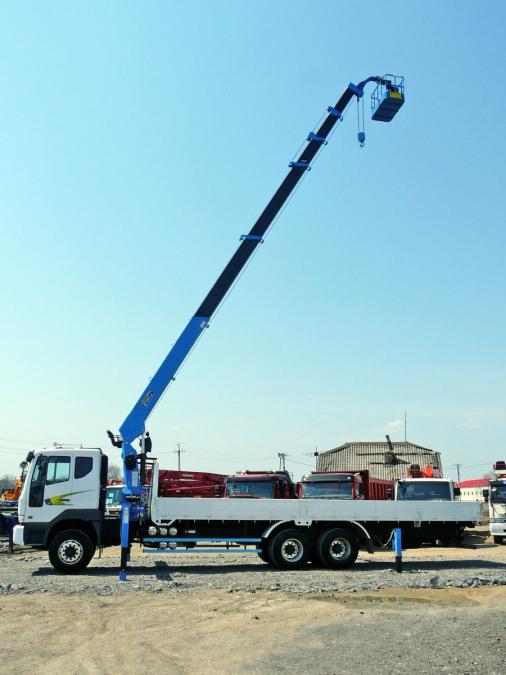 Бортовой грузовик с крановой установкой, 3 оси, грузоподъемность: борт - 11.5 т; стрела - 7 т. Длина борта - 9.1 м, ширина - 2.30 м. Новая двухцилиндровая стрела марки DONGYANG 1926, максимальная высота вылета - 22.7 м. Двигатель: DV11S, EURO-4, 360 л.с, 12000 см3. Шестиступенчатая коробка передач. Турботаймер. Количество мест - 2 + спальник. В комплект входит люлька.