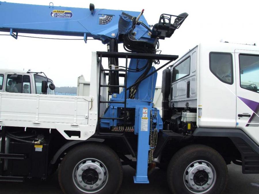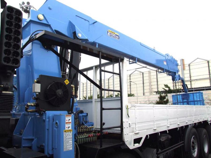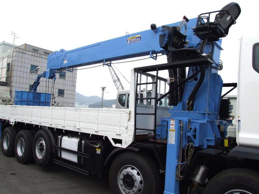 Новый бортовой грузовик с крановой установкой, 5 осей из них две передние - поворотные, одна ось «ленивая» , грузоподъемность: борт - 25 т; стрела - 15 т. Длина борта – 10.10 м, ширина - 2.30 м. Новая стрела марки Dongyang 3506, максимальная высота - 32 м, . Двигатель: дизель DV11, 420 л.с, 12000 см3. Коробка - ZF16(16 скоростей, делитель). Укомплектован корзиной для фасадных работ.