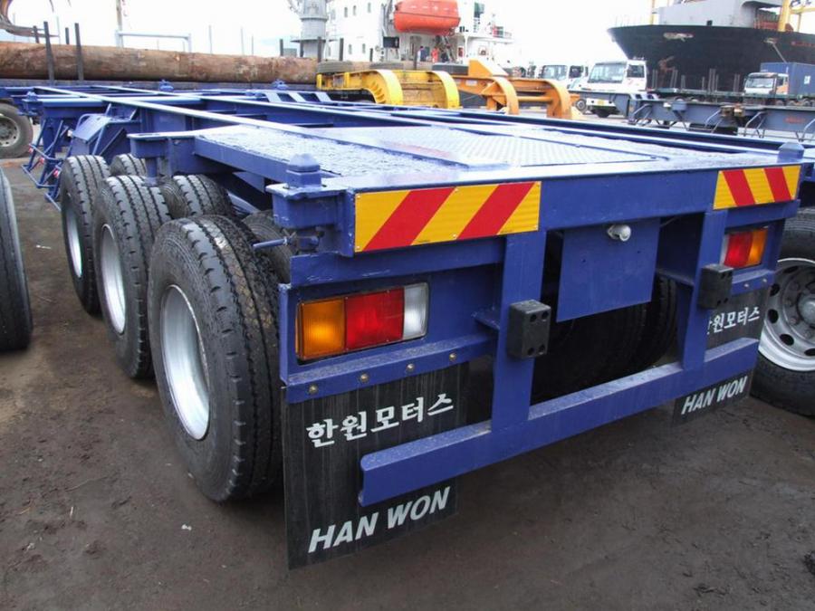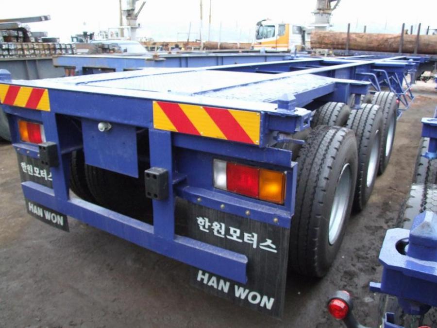 Продажа японских и корейских прицепов, п/прицепов и полуприцепов. Цена на грузовые полу прицепы контейнеровозы и автовозы из Кореи и Японии. Полуприцепы купить Hanwon Trailer прямой, 3 оси цена 2002 г. - № 577