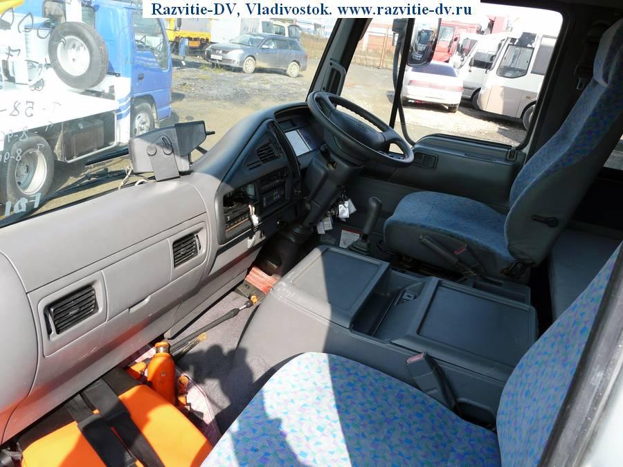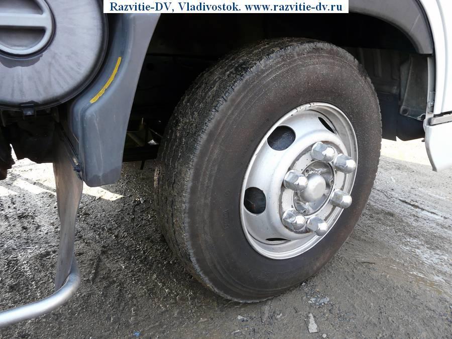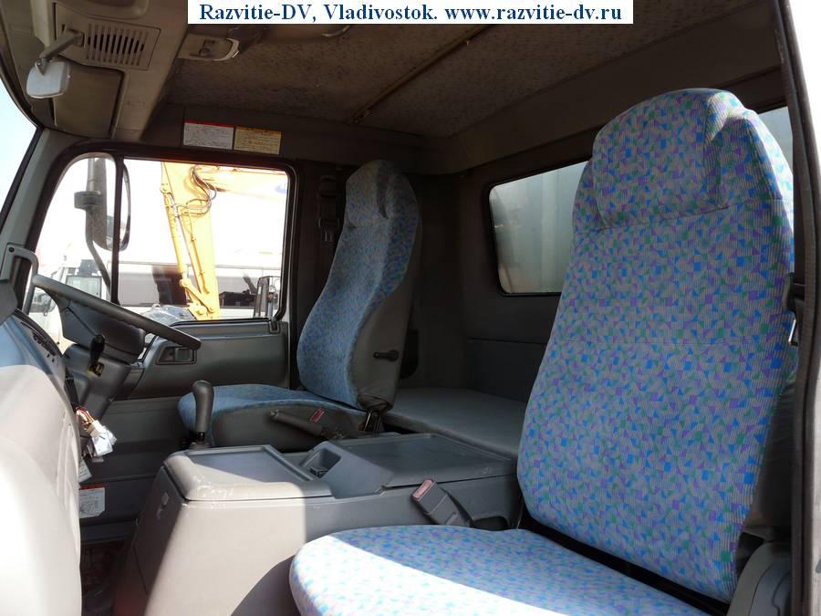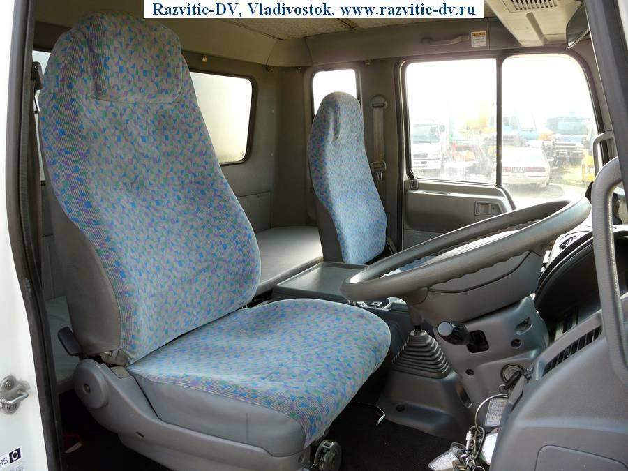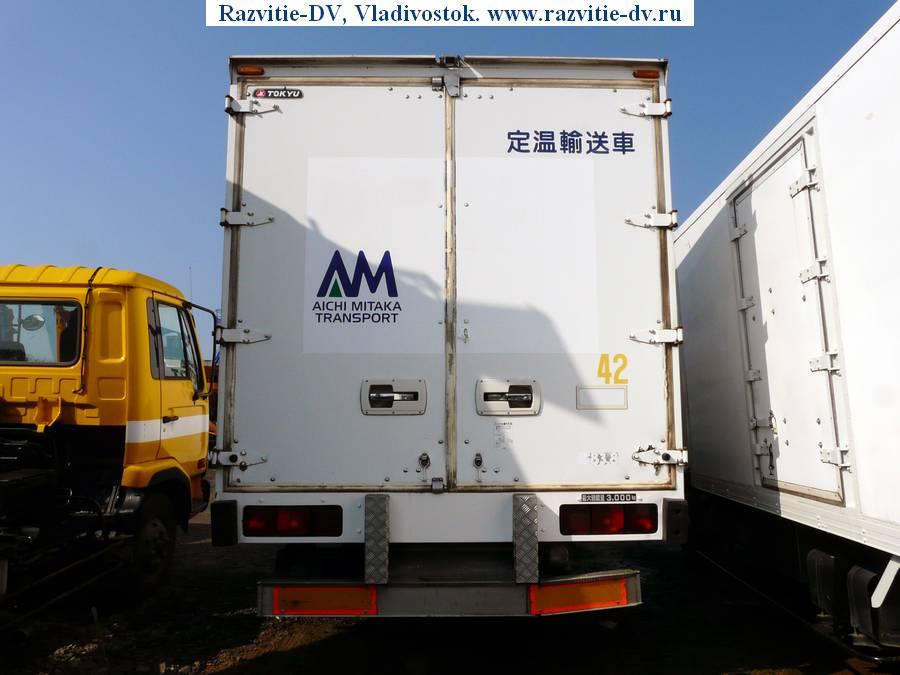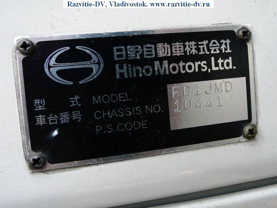 Рефрижератор до -30°, грузоподъёмность - 3 т, шасси - HINO FDJ1MD, дизель, объём двигателя - 8000 сс, одинаковые колёса R17.5, сзади двухскатные, спальник, камера заднего хода, боковая дверь, пятискоростная коробка передач.