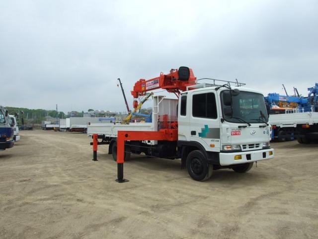 Бортовой грузовик с крановой установкой, 2 оси, грузоподъемность: борт - 4.5 тонн; стрела - 7 тонн. Стрела марки Kanglim 1256, 2004 г. выпуска. Максимальная высота вылета - 19,5 м. Модель двигателя: D6DA, 225 л.с. Шестиступенчатая коробка передач. Длина борта - 6.20 м, ширина - 2.30 м. Количество мест - 3 + спальник. Четыре аутригера. Новая резина, полная предпродажная подготовка, замена всех жидкостей, масел, фильтров.