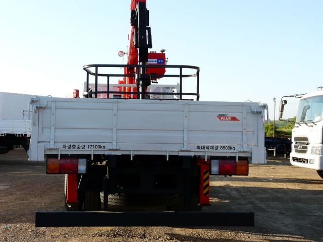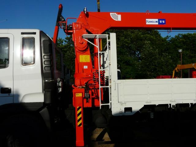 Бортовой грузовик с крановой установкой, 2 оси, грузоподъемность: борт – 8.5 т(оригинальная грузоподъемность); стрела - 7 т(НОВАЯ). Стрела марки Kanglim 2056(двухцилиндровая). Максимальная высота вылета - 23.3 м. Модель двигателя: D6AV, 11200 сс, 235 л.с. Турботаймер. Пятиступенчатая коробка передач. Длина борта - 6.2 м, ширина - 2.3 м. Количество мест - 2 + спальник. Одна лебёдка. В комплект входит люлька. Четыре аутригера. Размер колес - 11R20. Новая резина.