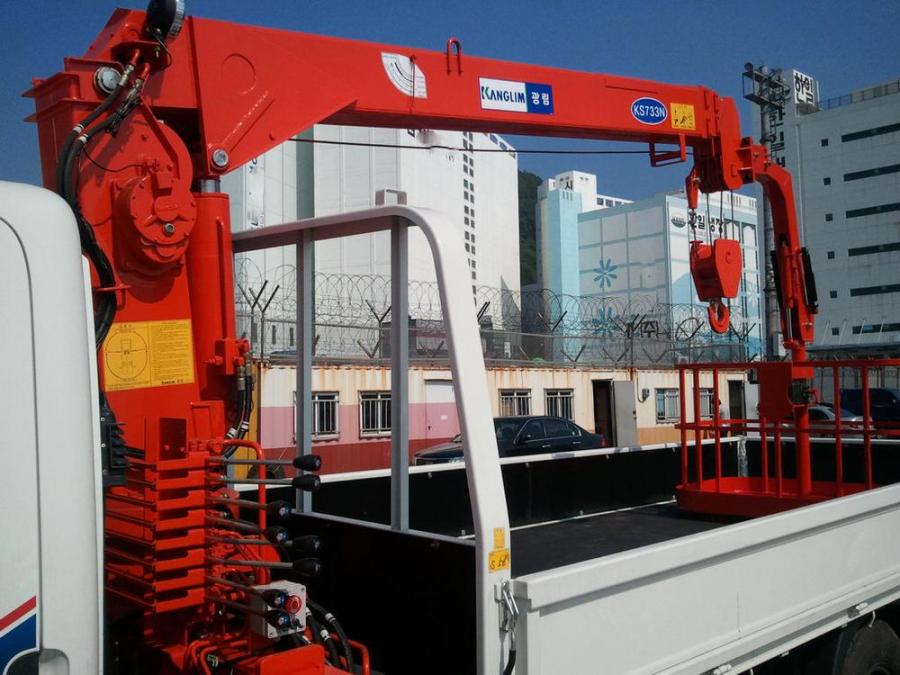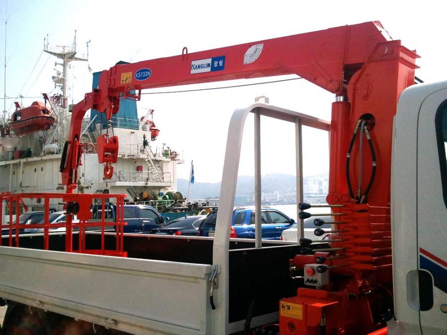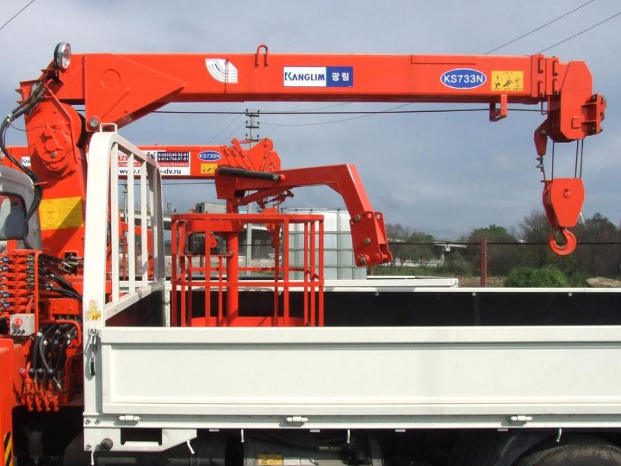 Новый бортовой грузовик Hyundai HD72 с новой крановой установкой Kanglim KS733N. Две оси. Грузоподъёмность борта - 3.5 т, грузоподъёмность стрелы - 3 т. Длина борта - 4.85 м, ширина борта - 2.05 м. Дизельный двигатель D4DC, мощность - 120 л.с., объем - 3900 см3. VIN - 7596