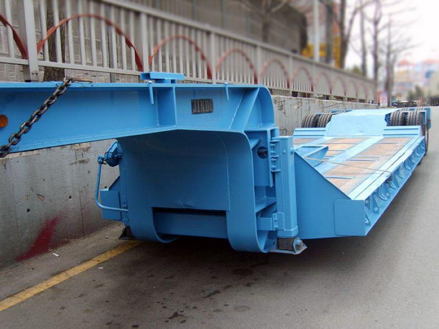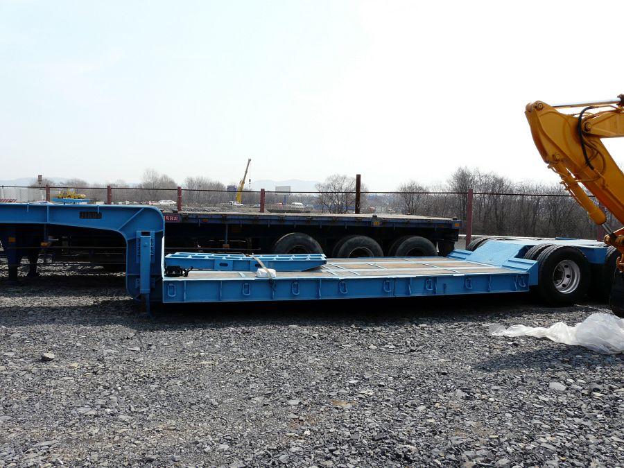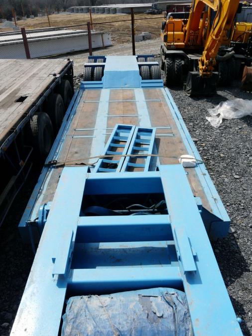 Трал для перевозки спецтехники, производитель - JINDO TRAILER, год выпуска - 1993, грузоподъемность - 40 тонн, две оси, радиус колёс - 22.5, ширина - 2.7 м, ширина с уширителями - 3 м, длина - 12 м, длина рабочей площадки - 5.7 м, длина от клюва до конца трала - 8.95 м, высота рабочей площадки - 0.65 м.
