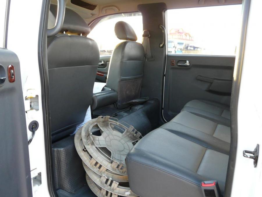 Двухкабинник. Цвет - белый, пробег - 59452 км, механическая коробка, отключаемый полный привод, дизель объём - 3000 сс, грузоподъёмность кузова - 800 кг, дуга, туманки, ветровики, брызговики хром, электрические стеклоподъёмники, уши складываются, подогрев сидений, подогрев ушей, серый кожаный салон с отделкой под дерево, кондиционер, CD. VIN - 6527