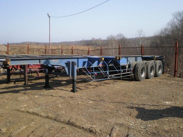 Полуприцеп-контейнеровоз,под один 40-ка футовый или два 20-ти футовых контейнера. Три оси. Длина12,3м,ширина 2,4м.Радиус колёс 22,5