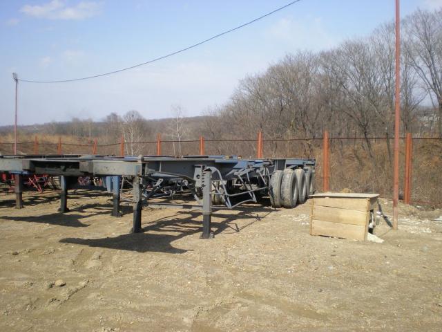 Полуприцеп-контейнеровоз (прямой), под один 40-ка футовый или два 20-ти футовых контейнера. Три оси. Длина12,4м,ширина 2,4м. Радиус колёс 22,5