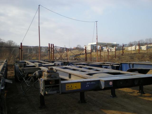 Полуприцеп-контейнеровоз (горбатка). Две оси. Длина12,5м,ширина 2,4м. Радиус колёс 22,5