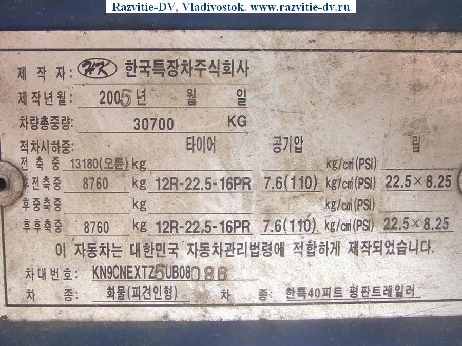 Продажа японских и корейских прицепов, п/прицепов и полуприцепов. Цена на грузовые полу прицепы контейнеровозы и автовозы из Кореи и Японии. Полуприцепы купить KoreaTrailer HTP-40XSB цена 2005 г. - № 219