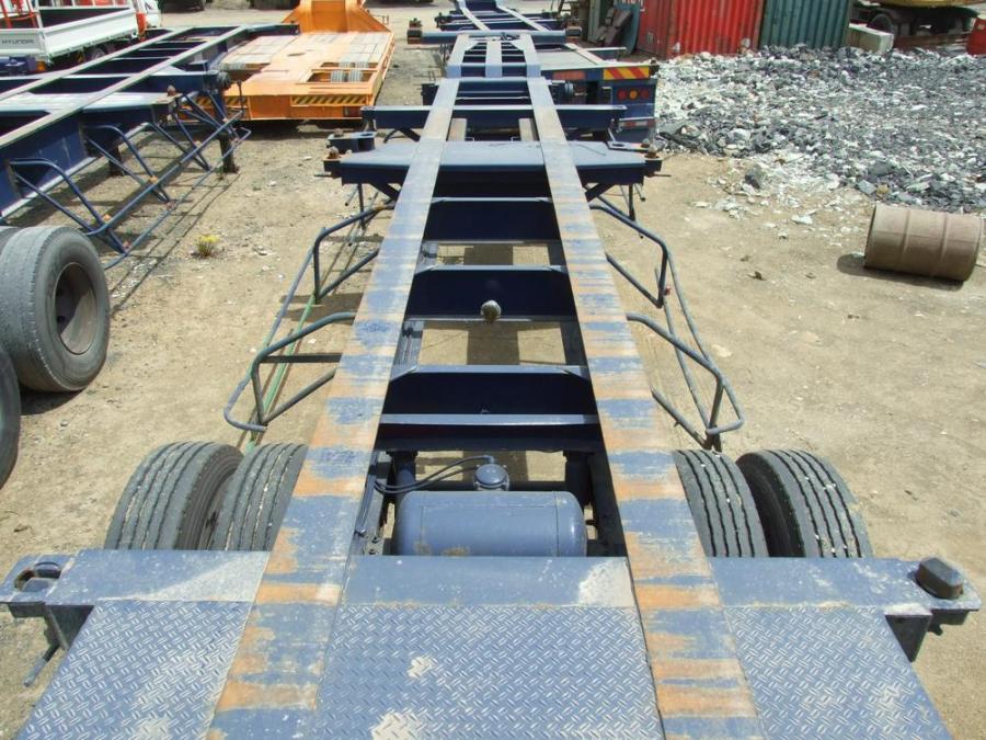 Двухосный полуприцеп - контейнеровоз (горбатый) для перевозки одного 40-футового или двух 20-футовых контейнеров, с возможностью перевозки одного 20-футового контейнера посередине прицепа. Радиус колёс - 22.5. Длина - 12.4 м, ширина - 2.4 м, грузоподъёмность - 25 т. VIN – 0005