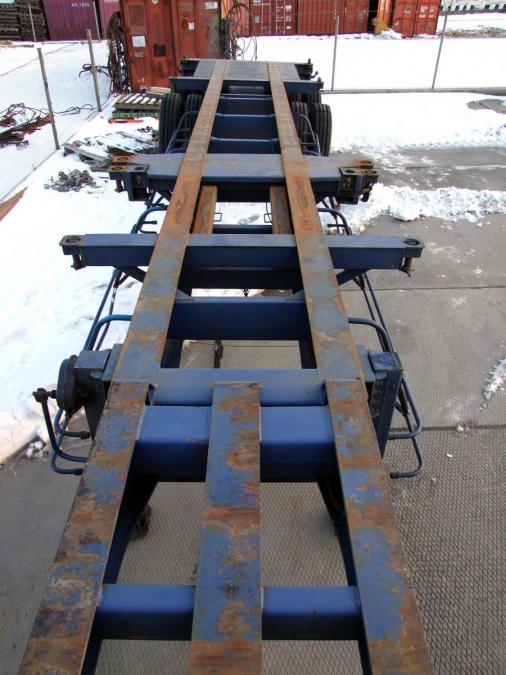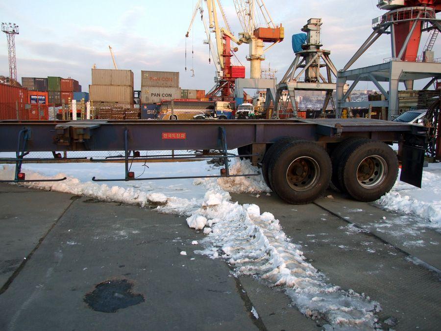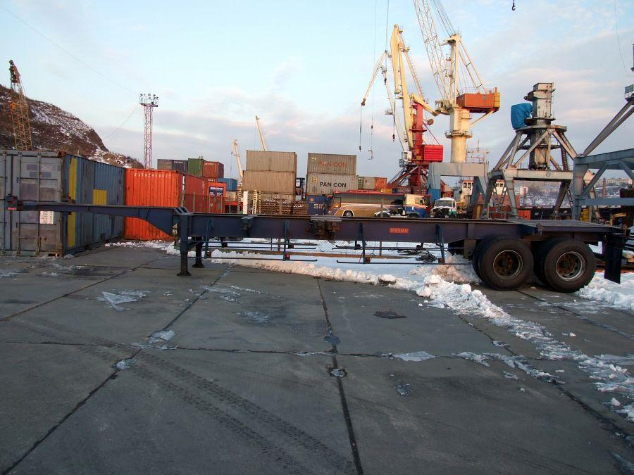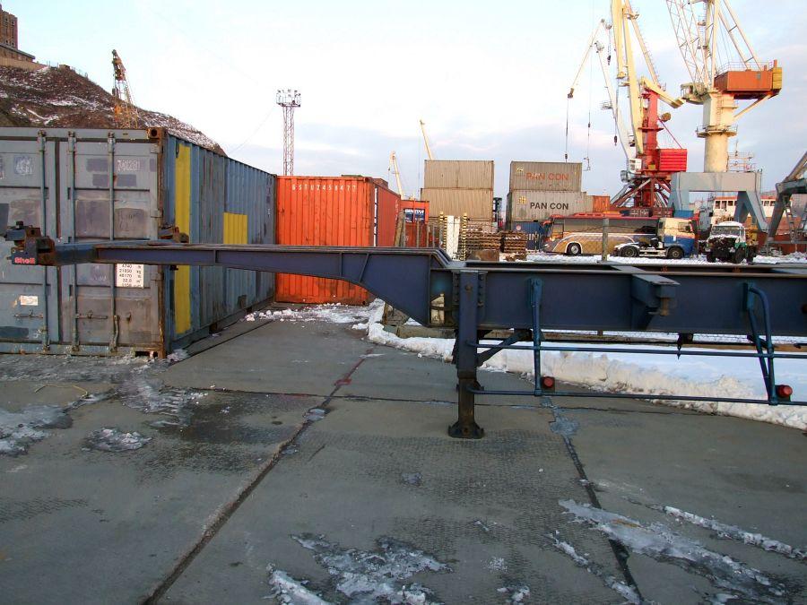 Двухосный полуприцеп - контейнеровоз (горбатка) для перевозки одного 40-футового или двух 20-футовых контейнеров, с возможностью перевозки одного 20-футового контейнера посередине прицепа. Длина - 12.4 м, ширина - 2.4 м, грузоподъёмность - 25 т. VIN - 0001