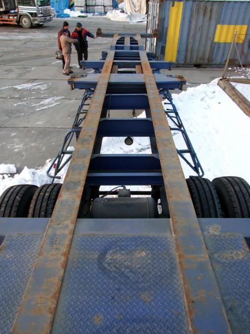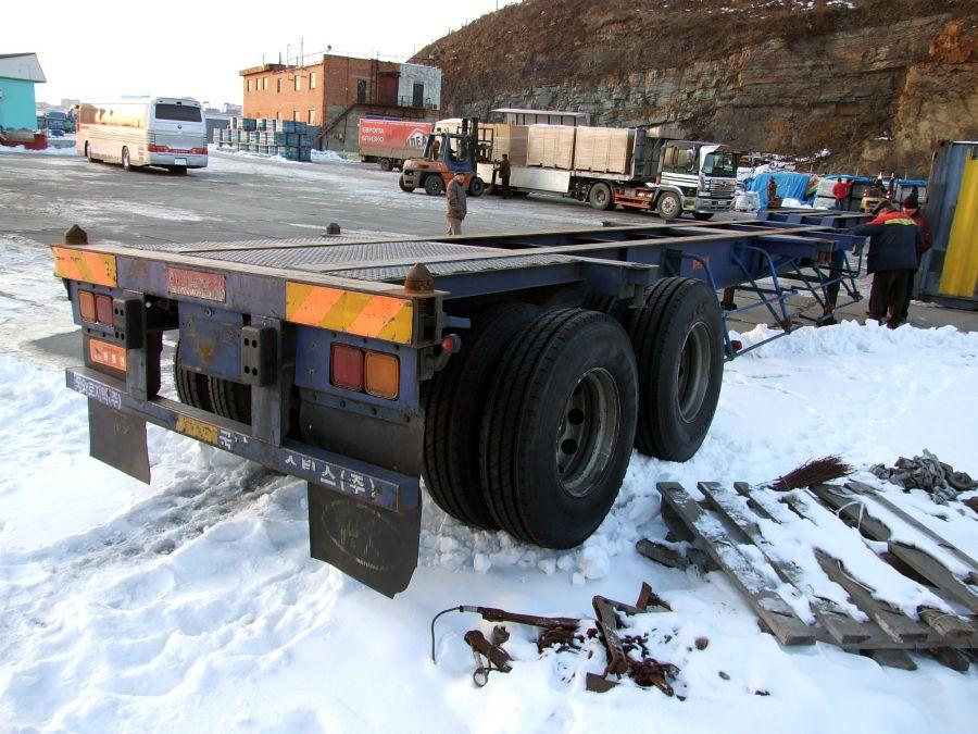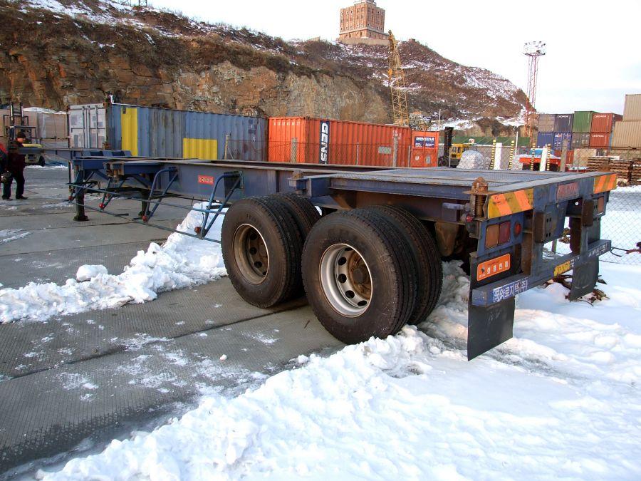 Продажа японских и корейских прицепов, п/прицепов и полуприцепов. Цена на грузовые полу прицепы контейнеровозы и автовозы из Кореи и Японии. Полуприцепы купить KoreaTrailer горбатка, 2 оси цена 2003 г. - № 338