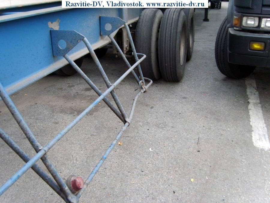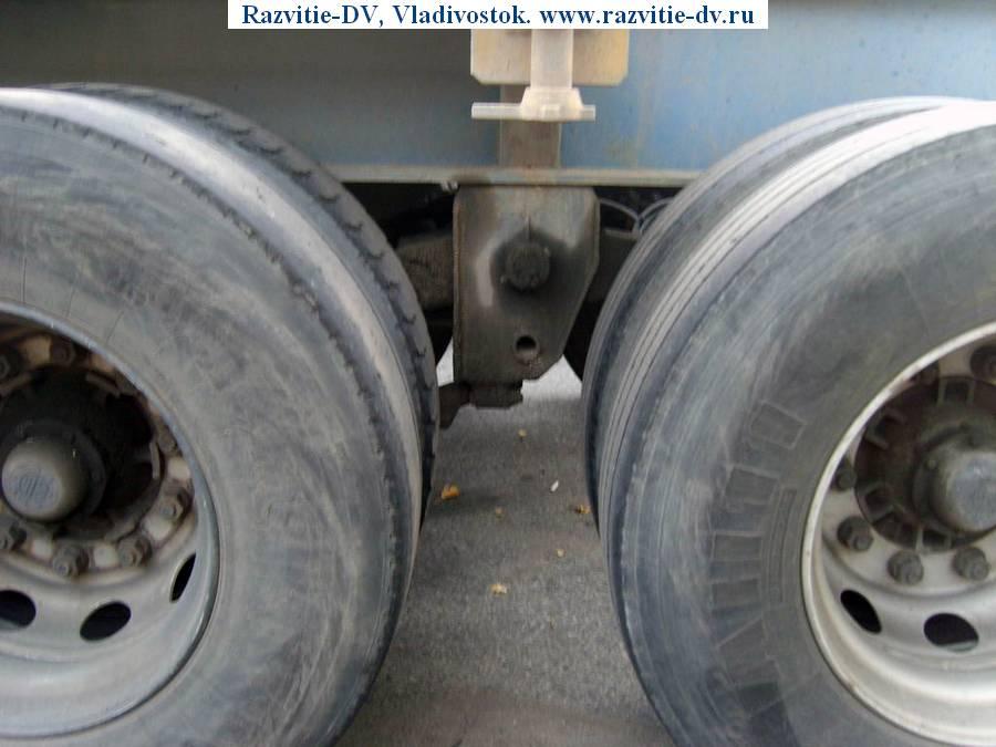Двухосный полуприцеп-контейнеровоз "горбатка" под один 40-футовый или два 20-футовых контейнера, с возможностью перевозить один 20-футовый контейнер посередине прицепа. Длина - 12.4 м, ширина - 2.4 м. Радиус колёс - 22.5. VIN - 9603