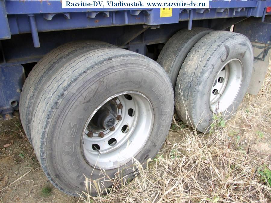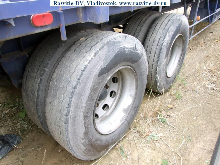 Двухосный полуприцеп - площадка под один 40-футовый или два 20-футовых контейнера, длина прицепа - 12.40 м, ширина - 2.40 м, колёса - 22.5, разрешённая максимальная масса - 30.7 т., грузоподъёмность - 24 т. VIN - 8465