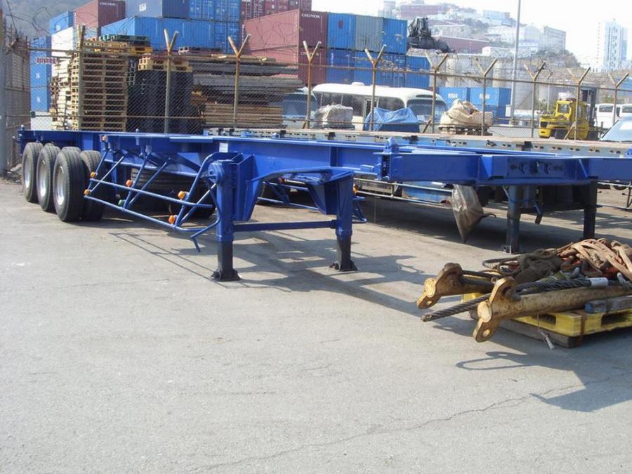 Продажа японских и корейских прицепов, п/прицепов и полуприцепов. Цена на грузовые полу прицепы контейнеровозы и автовозы из Кореи и Японии. Полуприцепы купить KoreaTrailer прямой, 3 оси цена 2002 г. - № 566