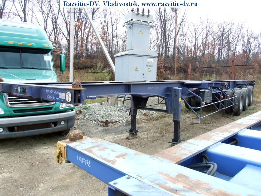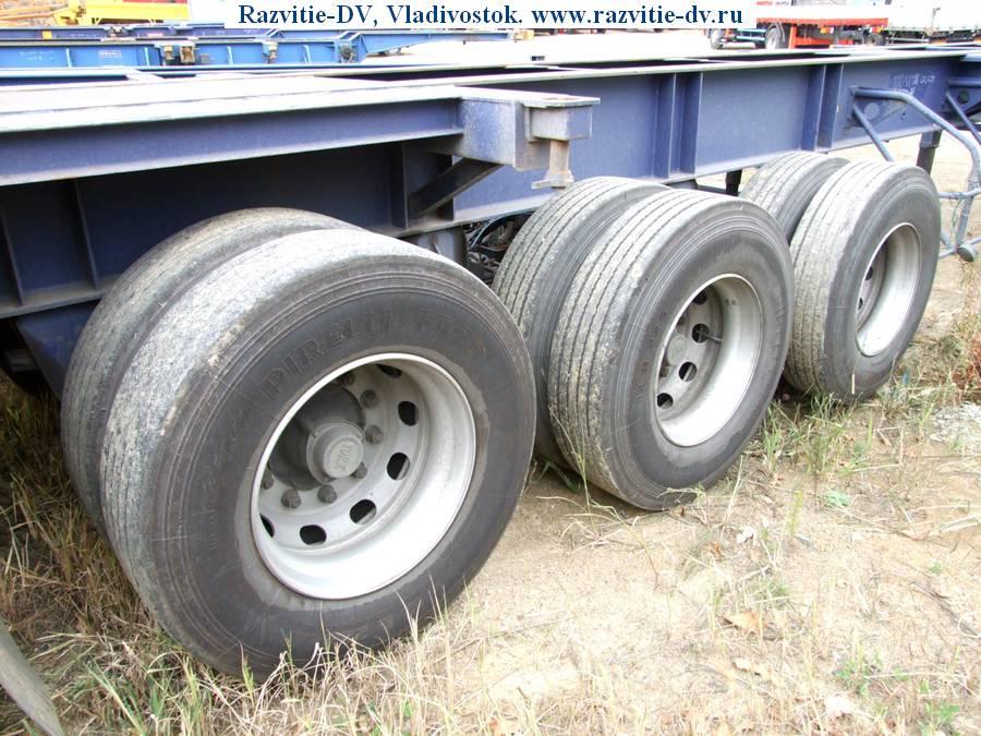 Трёхосный полуприцеп-контейнеровоз "прямой", под один 40-ка футовый или два 20-ти футовых контейнера с возможностью перевозки одного 20-футового контейнера посередине прицепа. Длина - 12.4 м, ширина - 2.4 м. Радиус колёс - 22.5. VIN - 8405