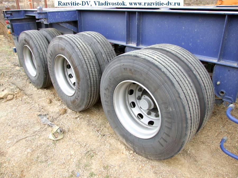Трёхосный полуприцеп-контейнеровоз (прямой) под один 40-футовый или два 20-футовых контейнера. Длина - 12.4 м, ширина - 2.4 м. Радиус колёс - 22.5. Грузоподъёмность - 24.5 т. VIN - 8080