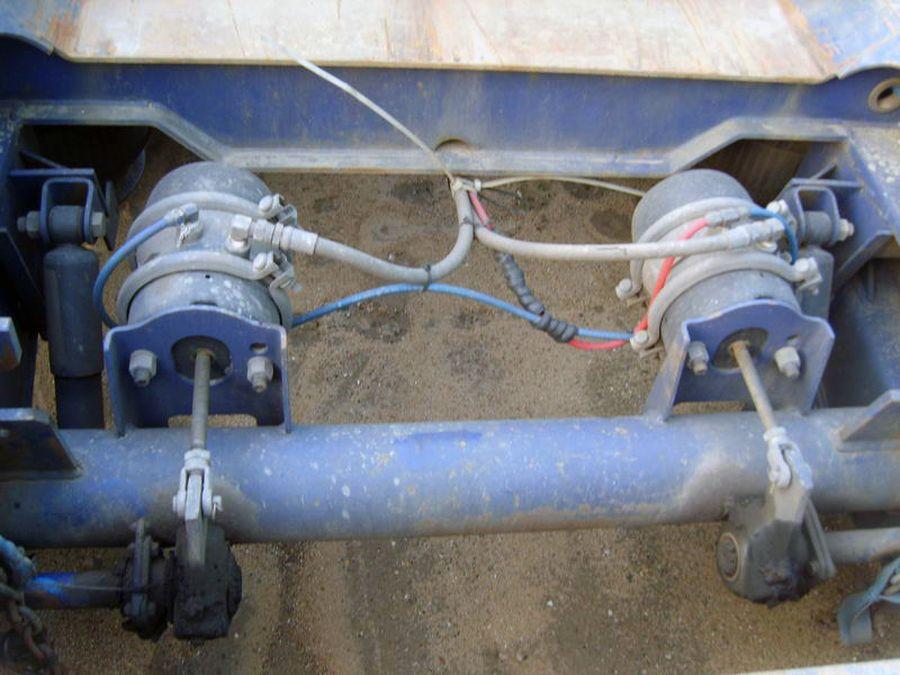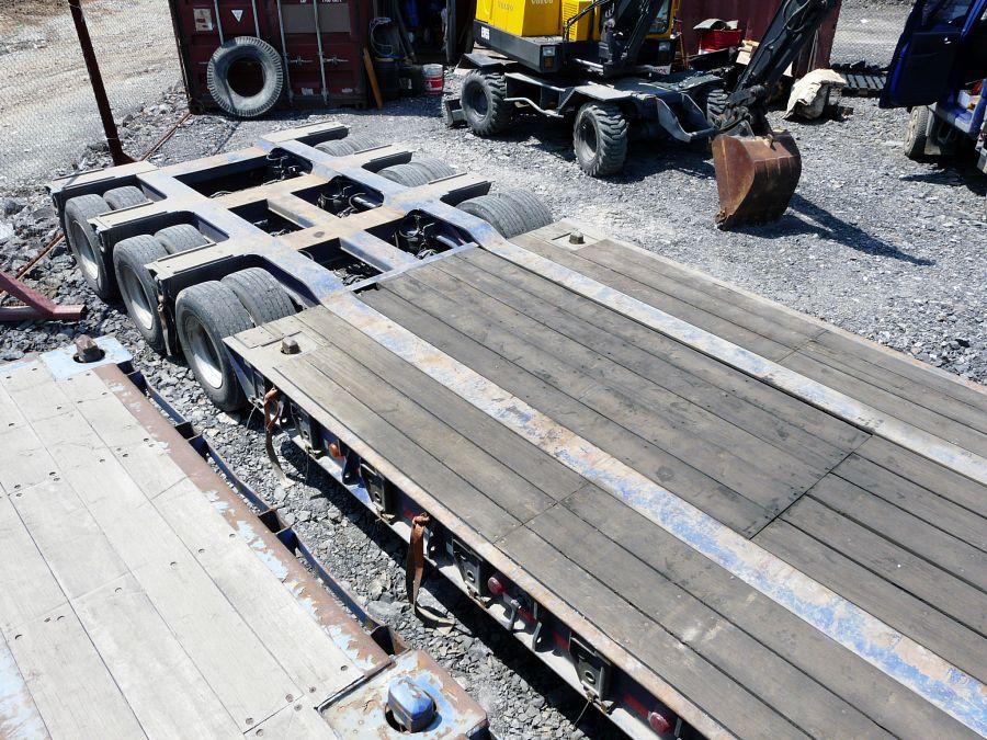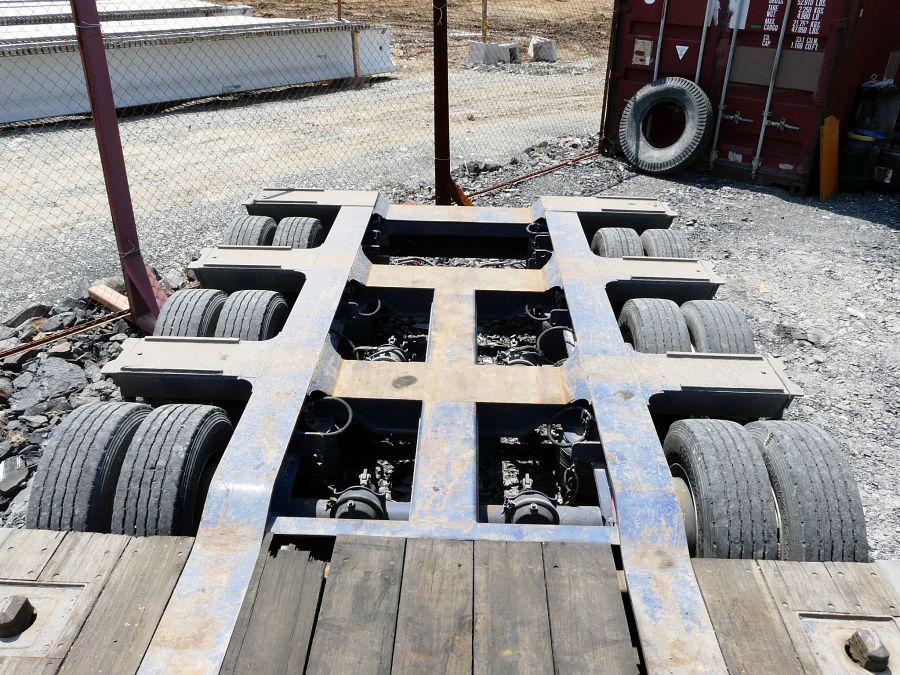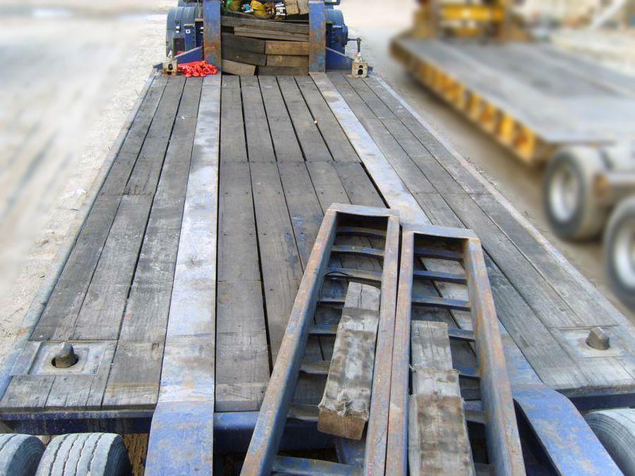 Трэйлер для перевозки спецтехники, грузоподъёмность - 35 т, ширина - 2.7 м, ширина с уширителями - 3 м, длина - 12.75 м, три оси, 12 колёс, радиус колёс - 17.5. Высота рабочей площадки - 0.65 м, длина от клюва до первой оси - 6.30 м, от клюва до конца трала - 9.40 м. Подвеска на пневмоподушках.