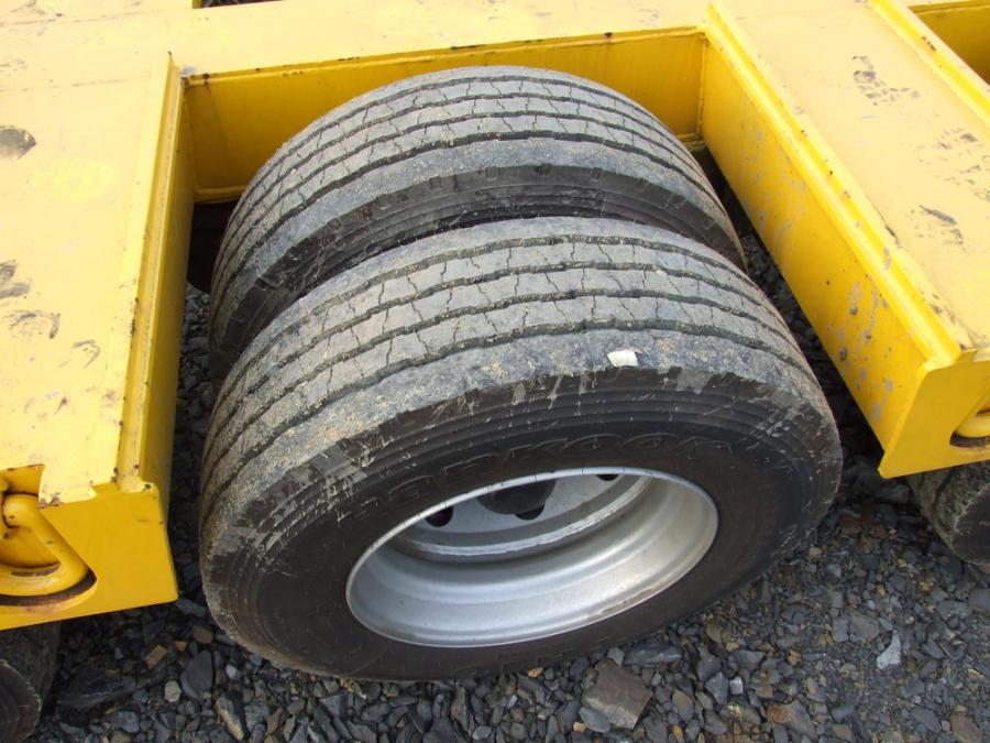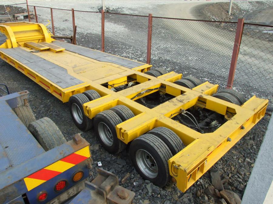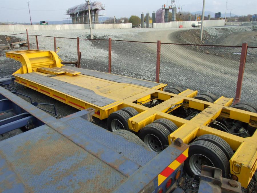 Грузоподъёмность - 35 тонн, три оси, 12 колёс, длина рабочей площадки - 6.10 м, ширина рабочей площадки - 2.75 м, длина от клюва до конца - 9.25 м, длина трала полностью - 12.20 м, высота от земли до рабочей площадки - 0.75 м. Сходни в комплекте. VIN - 9001