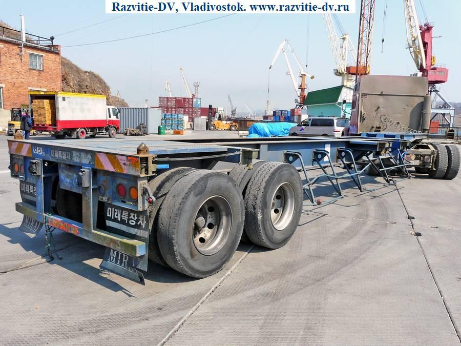 Продажа японских и корейских прицепов, п/прицепов и полуприцепов. Цена на грузовые полу прицепы контейнеровозы и автовозы из Кореи и Японии. Полуприцепы купить Mirai Trailer горбатка, 2 оси цена 2003 г. - № 305