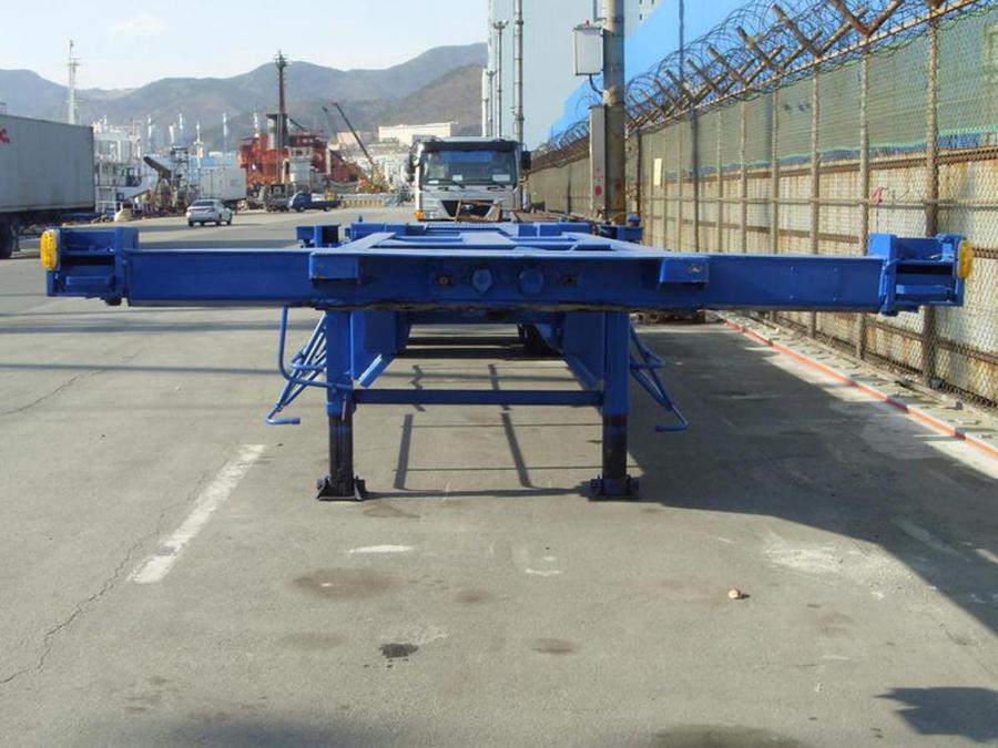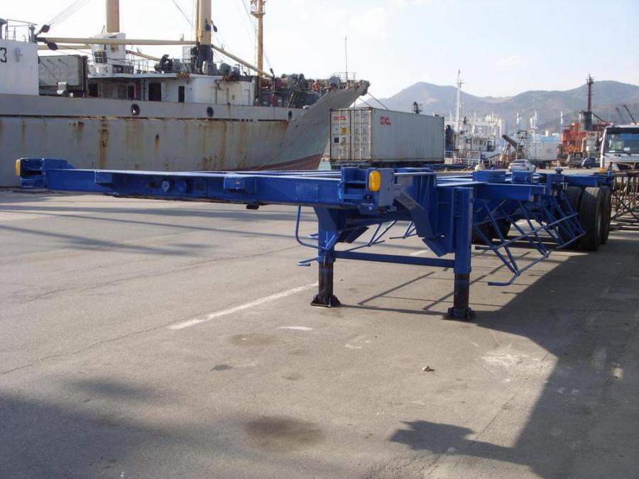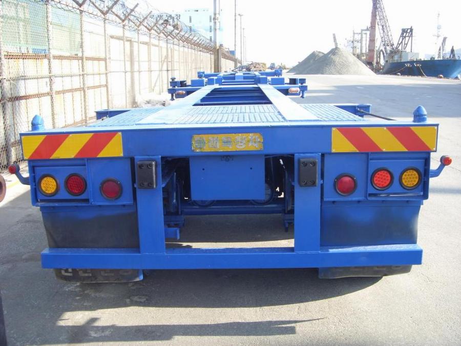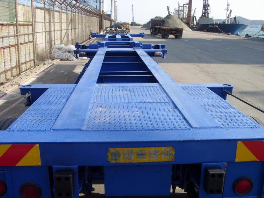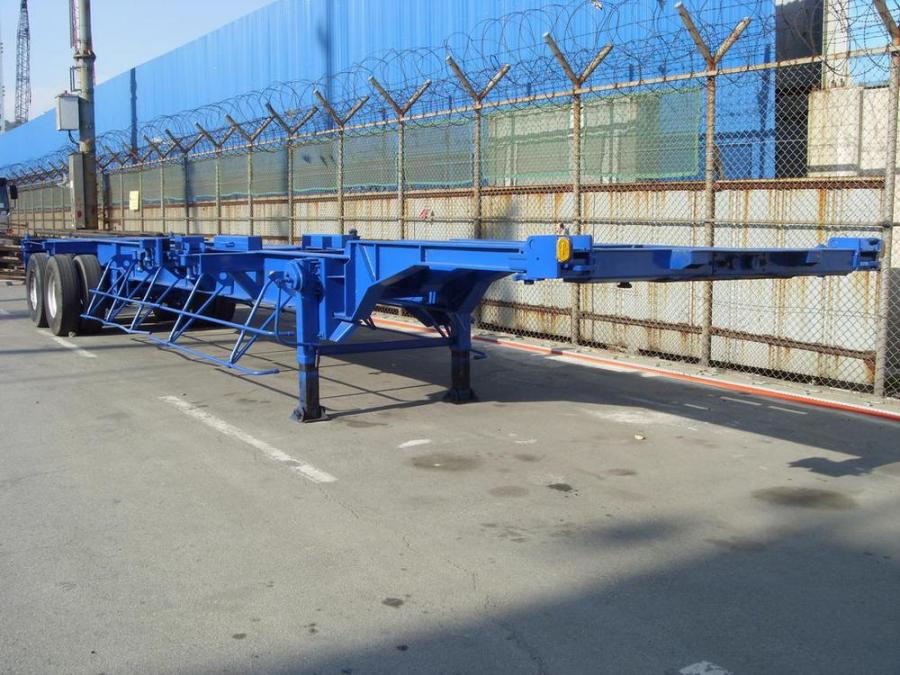 Двухосный полуприцеп-контейнеровоз под один 40-футовый или два 20-футовых контейнера, с возможностью перевозки одного 20-футового контейнера с размещением по центру прицепа. Длина - 12.3 м, ширина - 2.4 м. Грузоподъёмность - 25 т. Производство - Южная Корея. Радиус колёс - 22,5. VIN – 9438