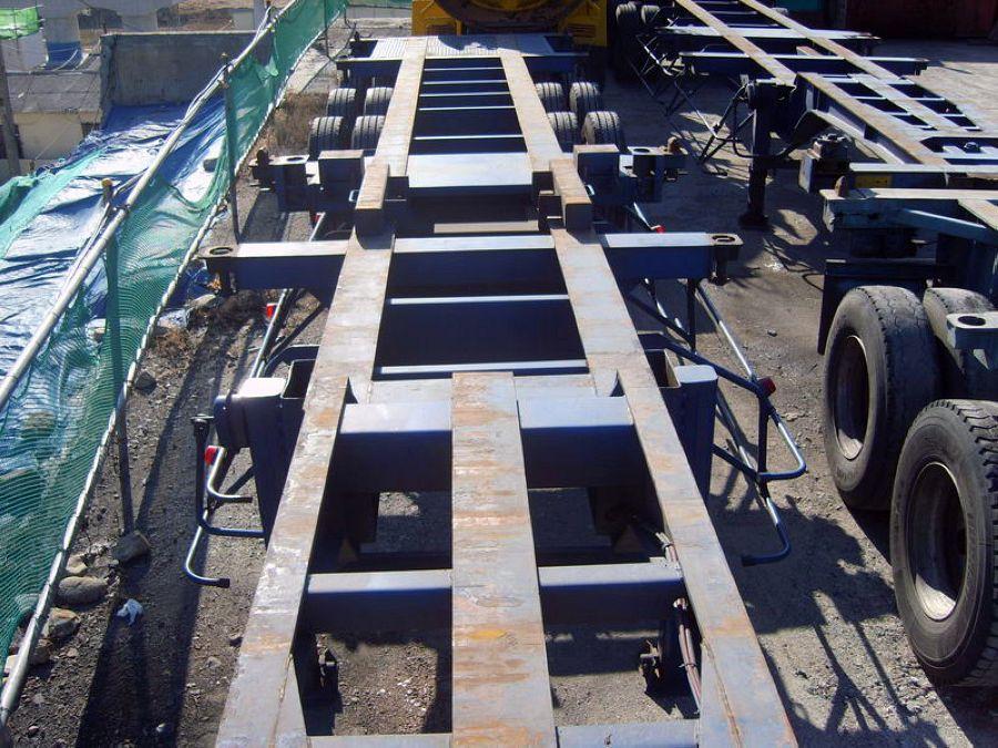Трёхосный полуприцеп - контейнеровоз (горбатка) для перевозки одного 40-футового или двух 20-футовых контейнеров, с возможностью перевозки одного 20-футового контейнера посередине прицепа. Длина - 12.4 м, ширина - 2.4 м, грузоподъёмность - 25 т. VIN - 9701