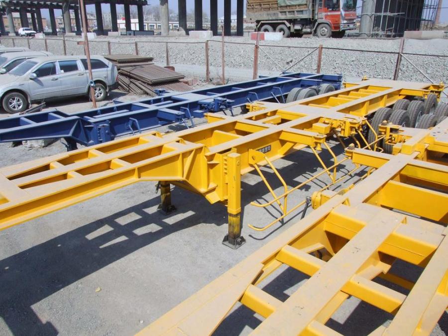 Новая резина. Трёхосный полуприцеп-контейнеровоз "горбатка" под один 40-футовый или два 20-футовых контейнера, с возможностью перевозить один 20-футовый контейнер посередине прицепа. Длина - 12.4 м, ширина - 2.4 м. Грузоподъёмность - 24.5 т, общий вес - 30.6 т. Радиус колёс - 22.5. VIN - 9601