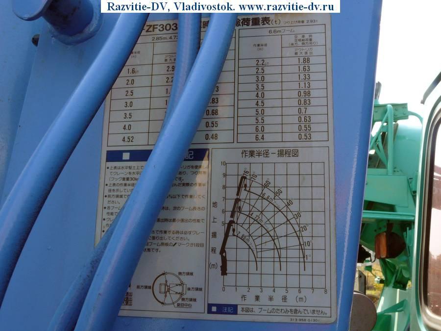 Бортовой грузовик с краном, борт - 5т, стрела - 3т. Длина борта - 5.50 м, ширина борта - 2.15 м. Стрела Tadano Super Z FX300, вылет - 9 м. Дизель, объём двигателя - 9200 сс. Спальник, одинаковые колеса R17.5, сзади двухскатные, шестиступенчатая коробка передач.