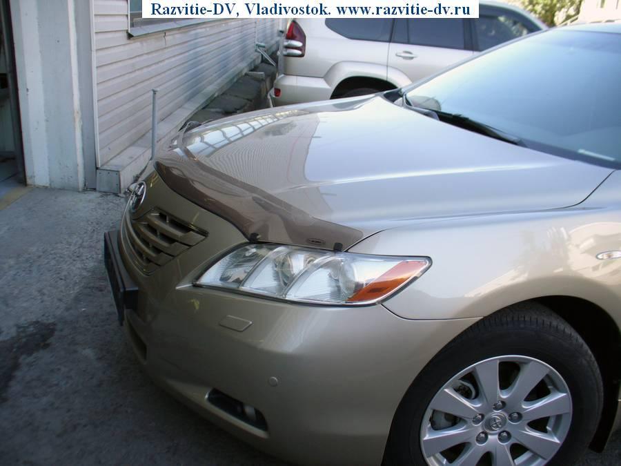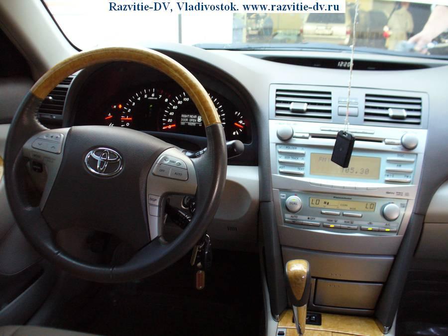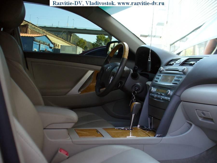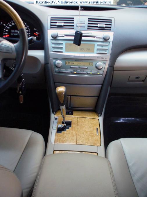 Toyota Camry 2006 г.в., левый руль. Двигатель - бензин V=3500 сс, мощность - 280 л.с., привод - передний. Пробег по России - два года. Была куплена в сентябре 2006 года в Саммит Моторс(Тойота Центр), всё ТО проходилось там же. Пробег - 48000 км, остался один год(или 50000 км) гарантии. Цвет - золото, литьё, ветровики, брызговики, дефлектор капота, очки на фарах, сонары спереди и сзади, туманки, светлый кожаный салон с отделкой под дерево, подогрев сидений и зеркал, шестискоростной автомат-типтроник(+/-), мощность двигателя - 280 л.с., CD/MP3 чейнджер на шесть дисков. Сделана предпродажная подготовка в Саммит Моторс.